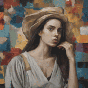 Λιτότητα και τέχνη σε πορτρέτο γυναίκας με καπέλο, εκφραστική και απλή, σε νέο, σύγχρονο στυλ ζωγραφικής.